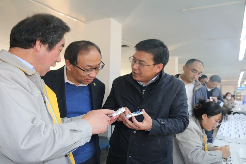 崔凤钊一行深入二一三米兰(中国)一站式服务平台集团零部件制造车间、国家企业技术中心、低压米兰(中国)一站式服务平台测试站,调研了企业零部件生产制造水平和配套能力、产品质量管控过程和产能潜力,以及科技研发成果等综合实力。